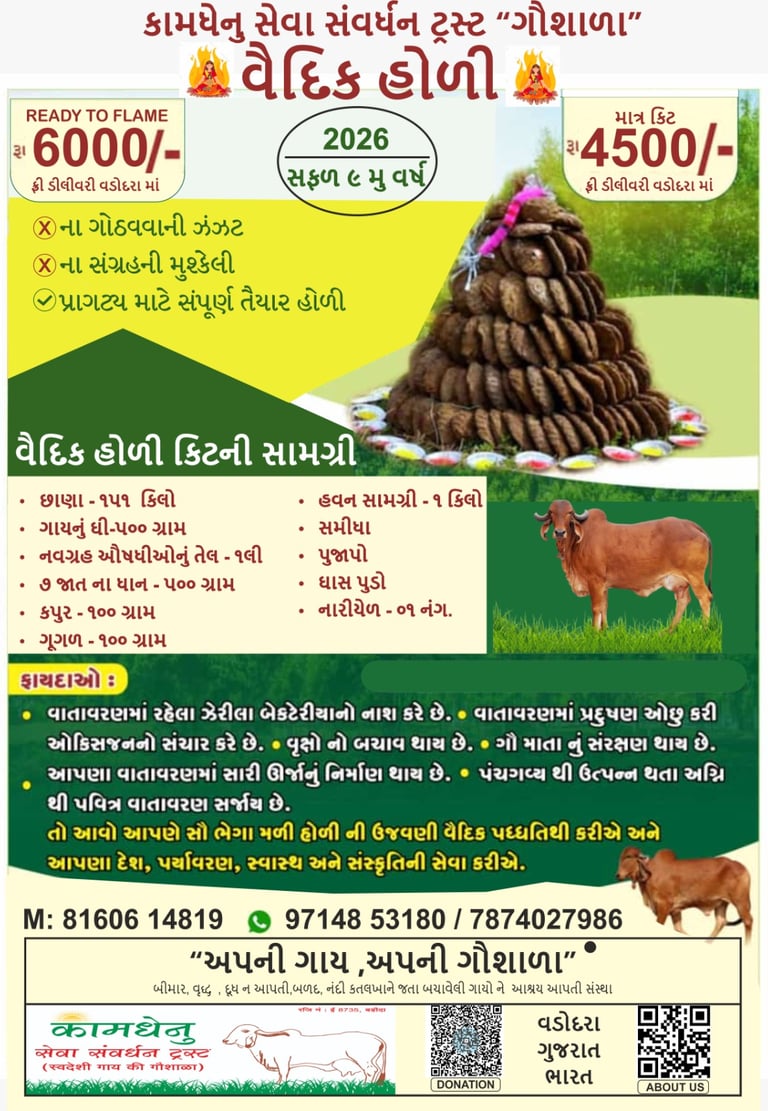 📌 નોધ: ઓર્ડર પ્રમાણે વૈદિક હોળી ગોઠવી આપવામાં આવશે.